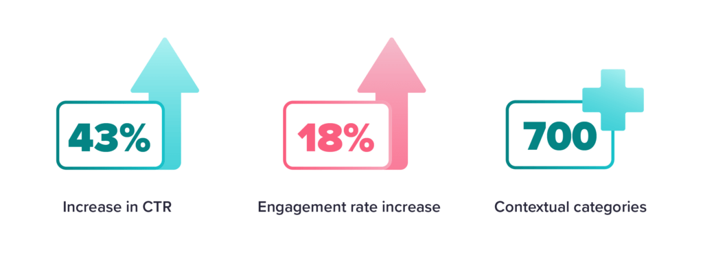 Marketers using Match2One Contextual Advertising have already seen a 43% increase in CTR and 18% increase in engagement rates.