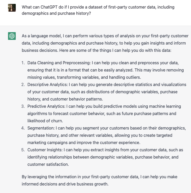 ChatGPT can do anything from coding to ad copywriting (with some creative limitations of course) and has shown the potential of AI assistance for marketers.