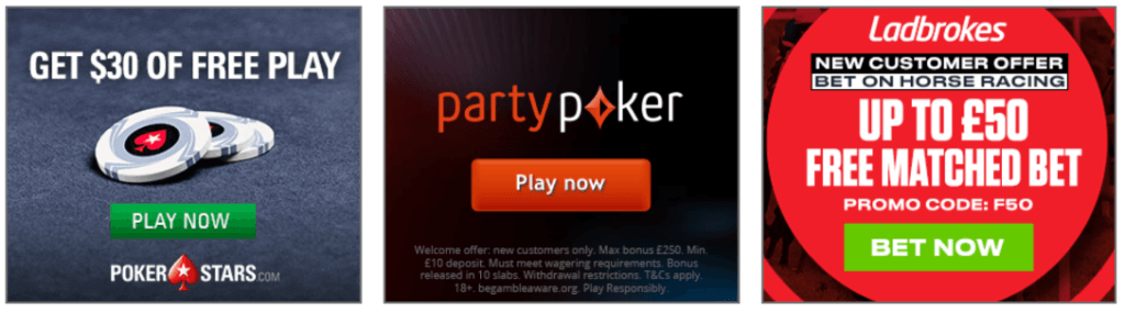 Here are 3 banner ads from the world’s biggest online betting and poker sites: