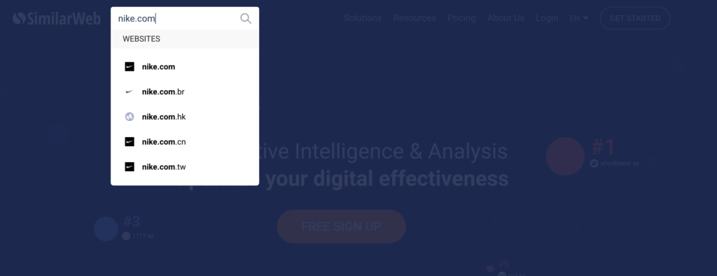 As an example, when you enter nike.com in the search field you should choose the first suggested result if you want the site with most traffic: