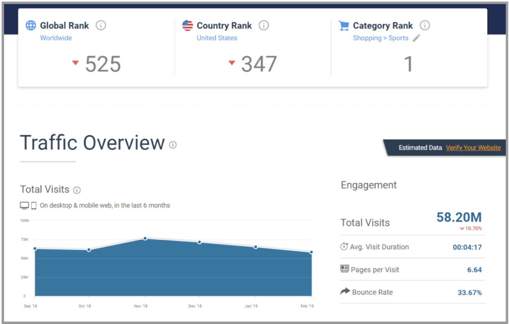 With Similarweb, you get information on things like website traffic, bounce rate, time on page, and a long list of other useful information: