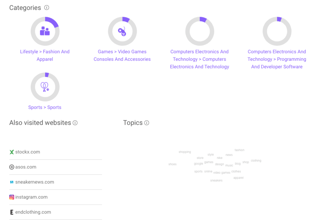 You can also see the 5 most common other websites that Nike fans visit, in this case for example stockx.com and asos.com.